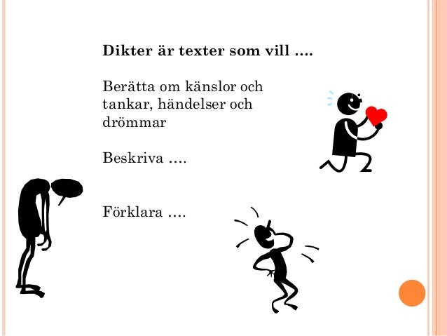 Kärleksdikter En vacker dikt till din älskade på Alla Hjärtans Dag. Antingen du använder dikter från kända poeter eller själv skriver några rader, kommer en dikt att få din älskade att känna sig speciell och. Dikten är nog mest känd för sin första del ”Vara vit mans slav” – men ställd bredvid sin andra del, som handlar om den vita husbonden, blir det en dikt som snarare handlar om tvåsamhetens omöjlighet.